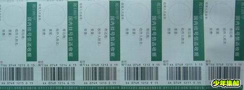 近在呼市得到一串邮政挂号信函收据,是连号的。条码部分是供办理挂号信函时贴在信封上的不干胶标签,其余部分加盖日戳后交寄信人收留备查。 那一排号码的最后两位数字是各省(市、自 ...